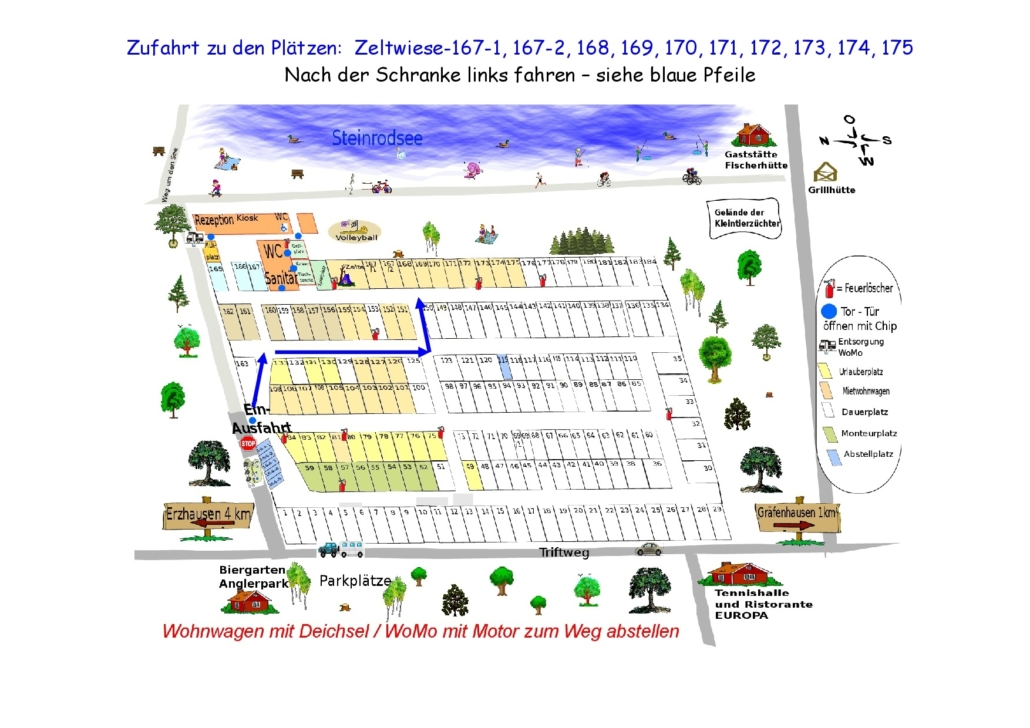Für Ihre Anreise stellen wir Ihnen hier die Platzpläne mit eingezeichneter Zufahrt zu Ihrem gebuchten Stellplatz zur Verfügung.