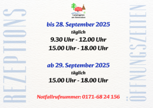 Anreisen ohne PKW sind nur während der Öffnungszeiten der Rezeption möglich.
